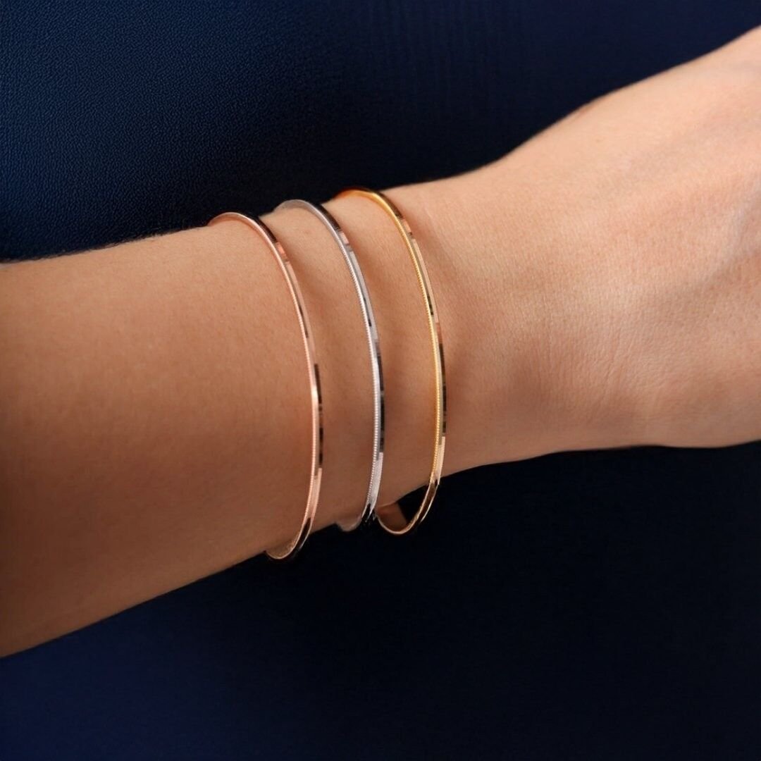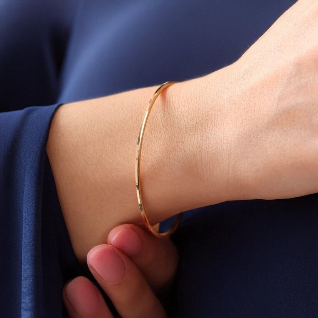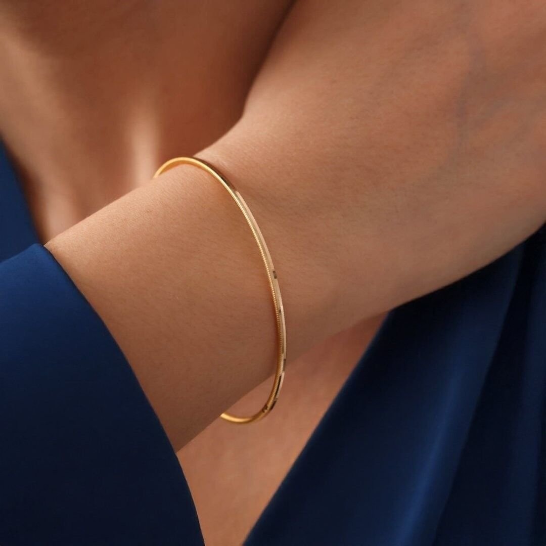Bilezik, 14 ayar altın kullanılarak özenle üretilmiştir. 14 ayar altın, altının saflık oranını ifade eden bir derece olan 14 ayarı kullanır. Bu bilezikte kullanılan altın, parlak bir görünüm sunar ve kaliteli bir işçilikle hazırlanmıştır.