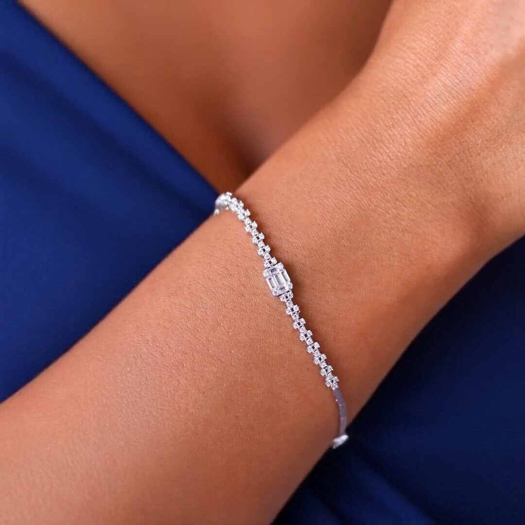 - Bileklik, 19 cm uzunluğundadır ve baget kesim taşlarla süslenmiş zincir şeklindedir.
