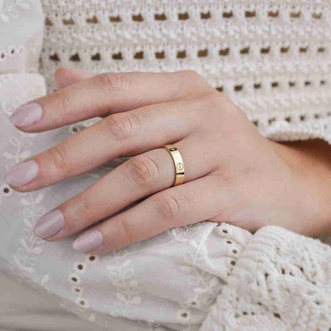 Bu 14 Ayar Altın Çivi Yüzük Alyans, minimalizm severler için mükemmel bir seçenek olup, her parmağa uyum sağlayacak zarif bir tasarıma sahiptir .