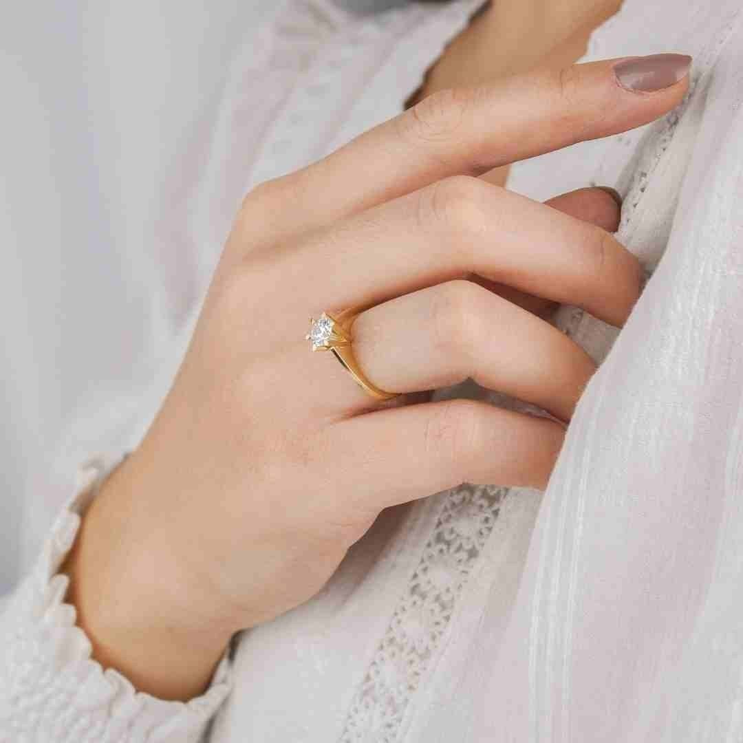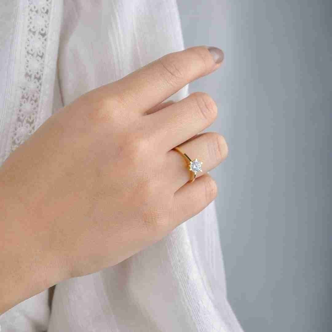 14 Ayar Altın Damla 6 Tırnaklı Yüzük