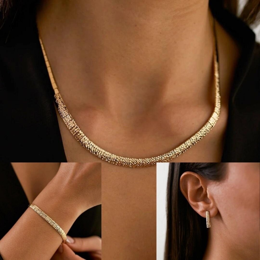 14 Ayar Altın Desenli Tasşsız Set Takımı 20,92 Gram ;