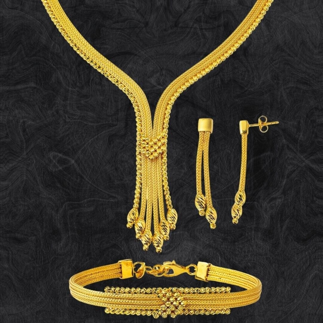Evla Kuyumculuk’un 14 Ayar Altın Dorikalı Hasır Örgü Set Takımı 38,00 Gram modeli, modern ve zarif bir tasarıma sahip, her yaştan kadına hitap eden bir aksesuardır. Set takımı, hasır deseninin modern görünümünü ve dorikaların ışıltısını altınla buluşturmaktadır.