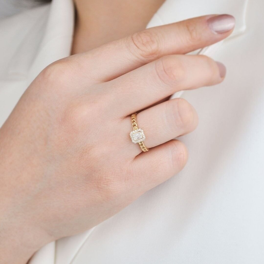14 Ayar Altın Gurmet Baget Yüzük, şıklığı ve zarafeti bir araya getiren modern bir tasarımdır. 1,75 gram ağırlığındaki bu zarif yüzük,