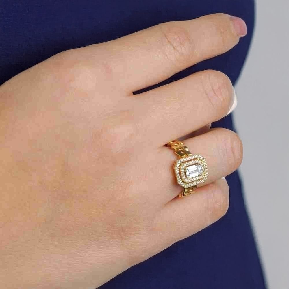 14 Ayar Altın Gurmet Baget Yüzük, şıklığı ve zarafetiyle öne çıkan zarif bir takıdır. 4,19 gram ağırlığında olan bu yüzük, modern baget kesim tasarımı ile her tarzı tamamlayacak mükemmel bir parça sunuyor. Sarı altının sıcaklığıyla tasarlanmış olup, kullanıcısına zarif ve dikkat çekici bir görünüm kazandırır.