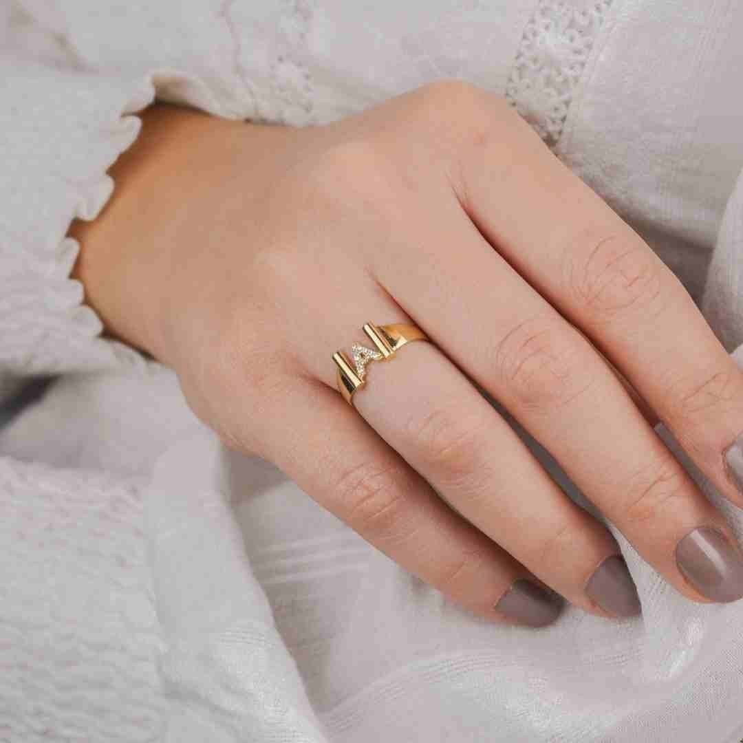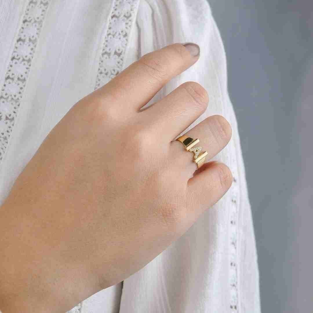 14 Ayar Altın Harfli Geniş Kollu Yüzük