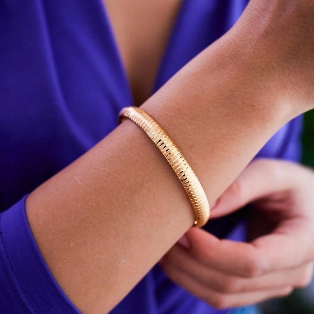 Evla Kuyumculuk’un 14 Ayar Altın İnce Bileziği, zarif ve şık bir görünüm sunan özel bir mücevherdir. Bu bilezik, yüksek kaliteli 14 ayar altından üretilmiş ve zarafetiyle öne çıkar. Bilezik, 14 ayar altın kullanılarak özenle üretilmiştir. 14 ayar altın, altının saflık oranını ifade eden bir derece olan 14 ayarı kullanır. Bu bilezikte kullanılan altın, parlak bir görünüm sunar ve dayanıklı bir yapıya sahiptir. Kaliteli işçilikle hazırlanmıştır.