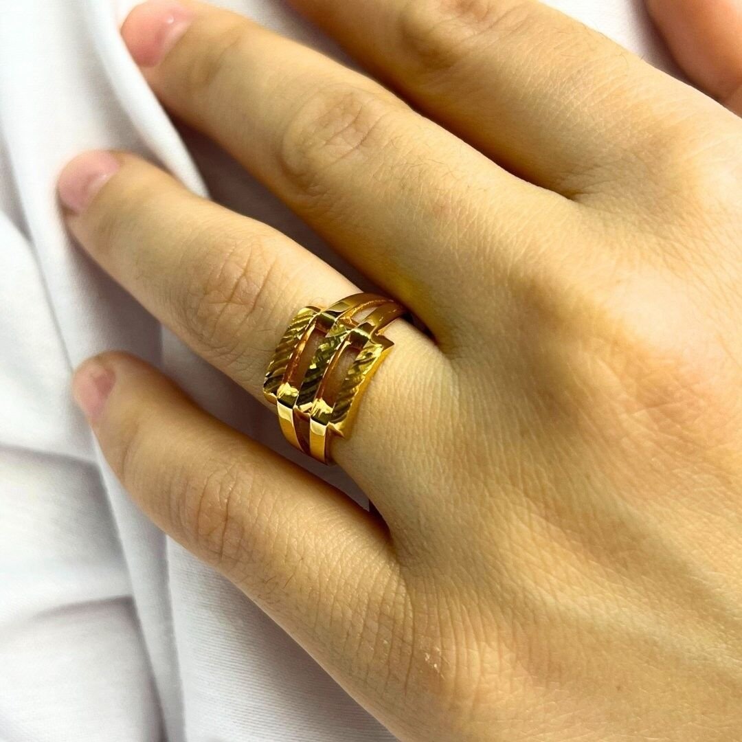 Bu modern ve dikkat çekici 14 ayar altın kaburga yüzük, kaburga şeklindeki tasarımıyla öne çıkar. Yüzüğün katmanlı ve dalgalı yapısı, ona derinlik ve hacim kazandırırken altının parlaklığıyla şık ve cesur bir görünüm sunar. 2,52 gram ağırlığındaki bu yüzük, hem hafif hem de rahat bir kullanıma sahiptir.
