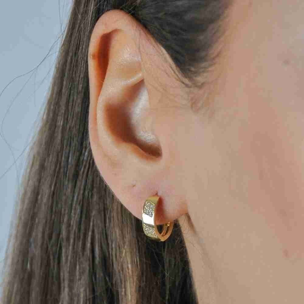 14 Ayar Altın Köşeli Taşlı Halka Küpe