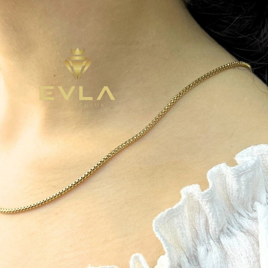 Bu 14 ayar altından yapılmış oval İtalyan zincir, zarif ve sağlam yapısıyla dikkat çeker. 6,85 gram ağırlığındaki zincir, 55 cm uzunluğunda olup, oval halka tasarımıyla İtalyan işçiliğinin şıklığını ve zarafetini yansıtır. Parlak ve göz alıcı yüzeyi sayesinde, günlük kullanımdan özel davetlere kadar her ortamda stilinize sofistike bir dokunuş katar.