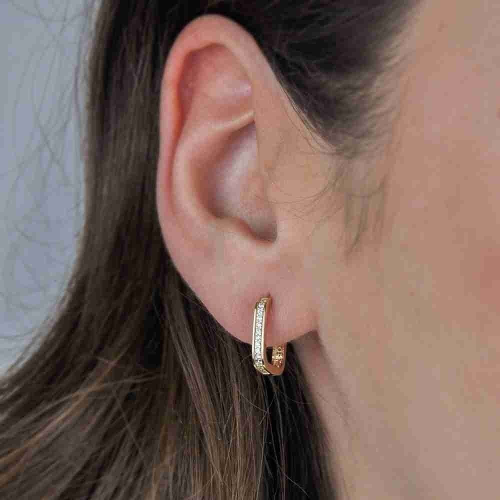 14 Ayar Altın Oval Kare Halka Küpe