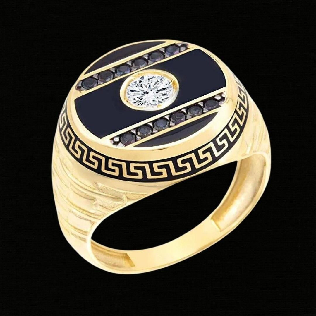 Yüzüğün ön yüzünde, oval şekilde tasarlanmış siyah mine ile işlenmiş zarif bir desen yer almaktadır. Bu desen, yüzüğe modern ve zarif bir görünüm kazandırmaktadır. Yüzüğün yanları ve iç kısmı pürüzsüz bir şekilde cilalanmıştır. Bu da yüzüğü takmayı oldukça konforlu hale getirir.