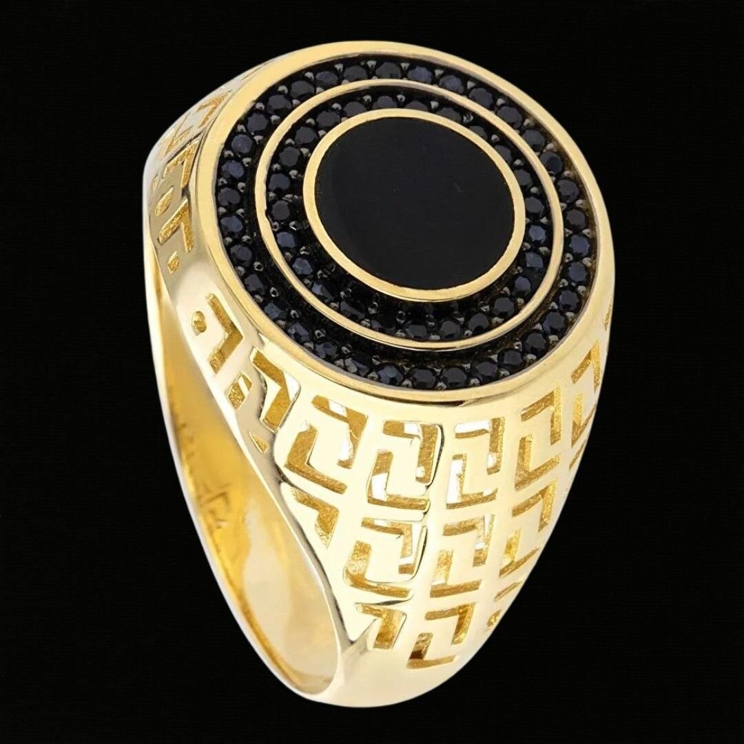 Özellikleri: 14 Ayar Altın Oval Siyah Taşlı Model Erkek Yüzüğü