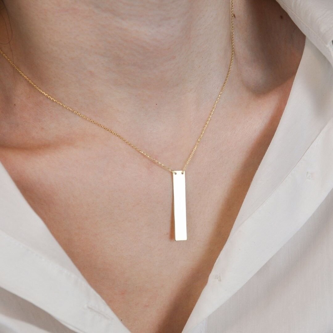 14 Ayar Altın Piramit Plaka Kolye