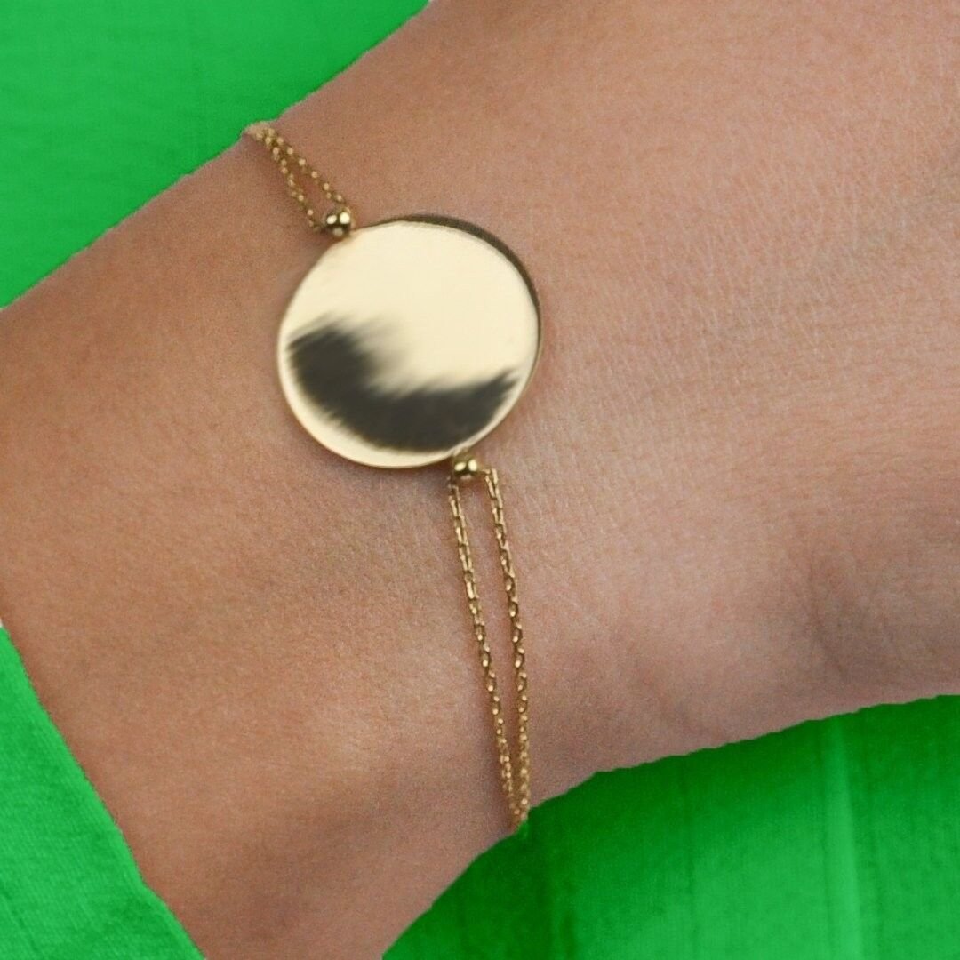 Minimalist ve şık tasarımıyla her bileğe uyum sağlayan 14 Ayar Altın Plaka Zincirli Bileklik, zarifliğiyle stilinize sofistike bir dokunuş katar.