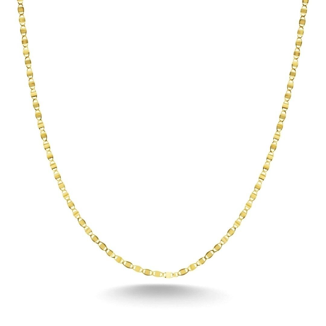 Evla Kuyumculuk’un en sevilen tasarımlarından biri olan 14 Ayar Altın Pullu Ezme Zincir 2,60, 2,60 gram ağırlığında ve 50 cm uzunluğundadır. Zincir, şık ve modern bir görünüm sunan pullu ezme zinciri tasarımına sahiptir.