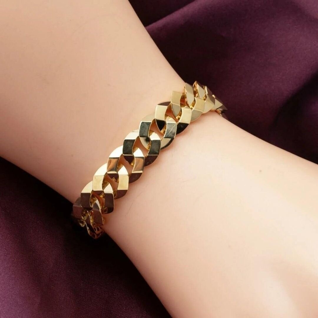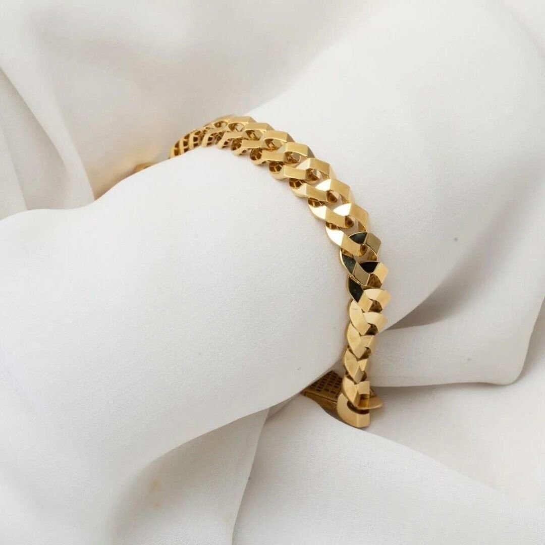 14 Ayar Altın Sade Gurmet Bileklik, 17,81 gram ağırlığında olup, altın renginde zarif bir tasarıma sahiptir. Sade gurmet zincir tasarımıyla modern bir görünüm sunan bu bileklik, altının sıcak ışıltısını bileğinizde hissettirir. Üzerinde taş bulunmayan minimalist tasarımı, şıklığı ve zarafetiyle dikkat çeker.