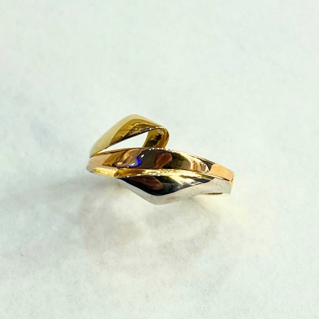 Yüzüğün renkli altın dokusu, klasik tasarımı modern bir dokunuşla zenginleştirir.