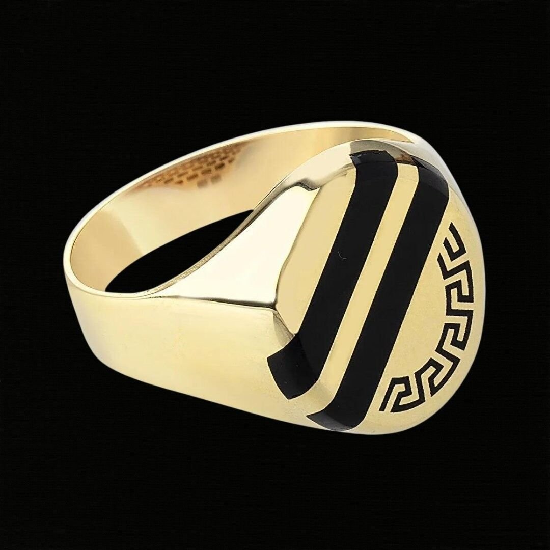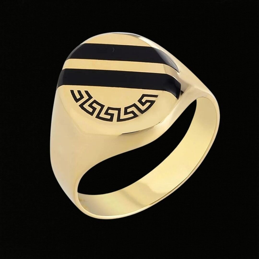 14 Ayar Altın Siyah Mine İşlemeli Erkek Yüzüğü