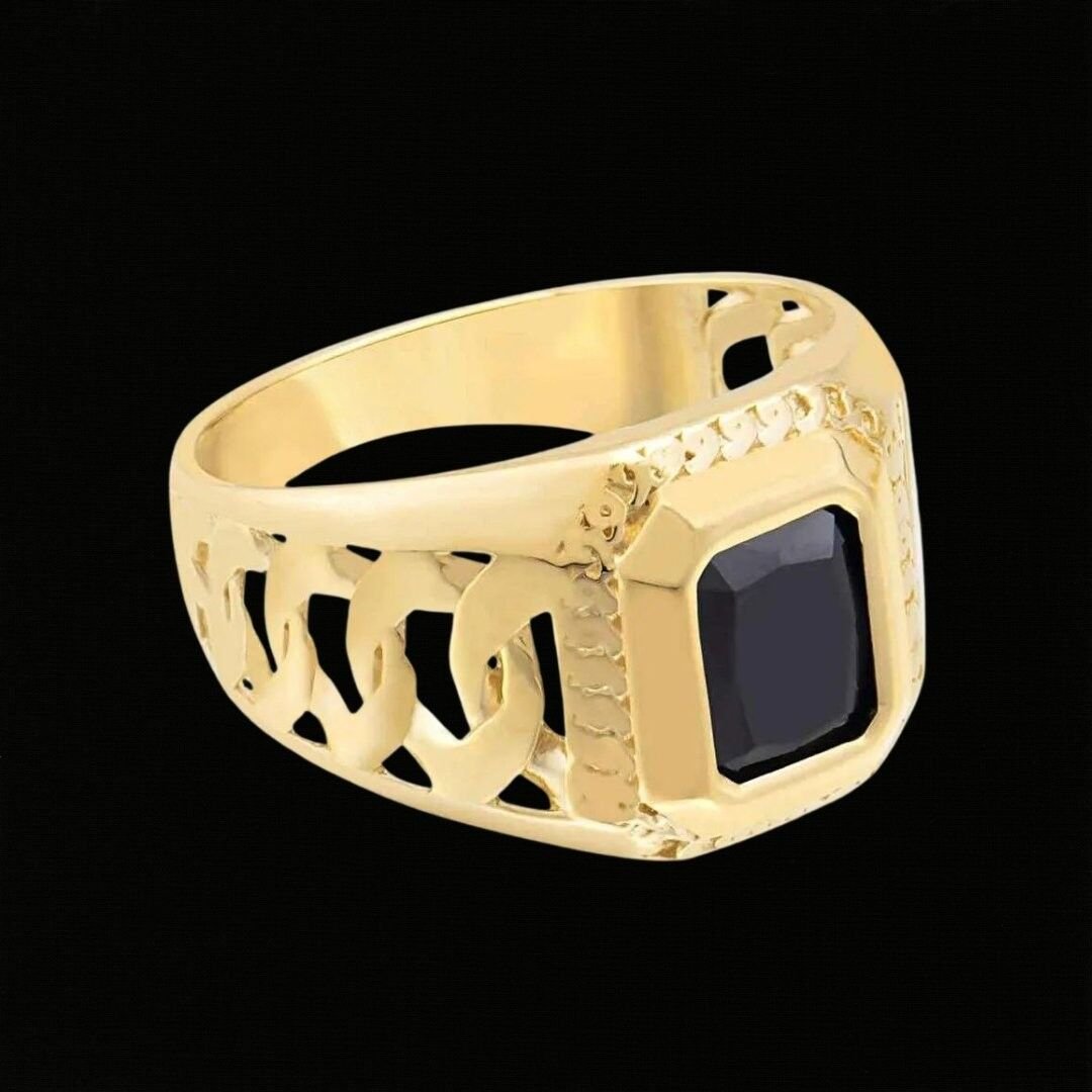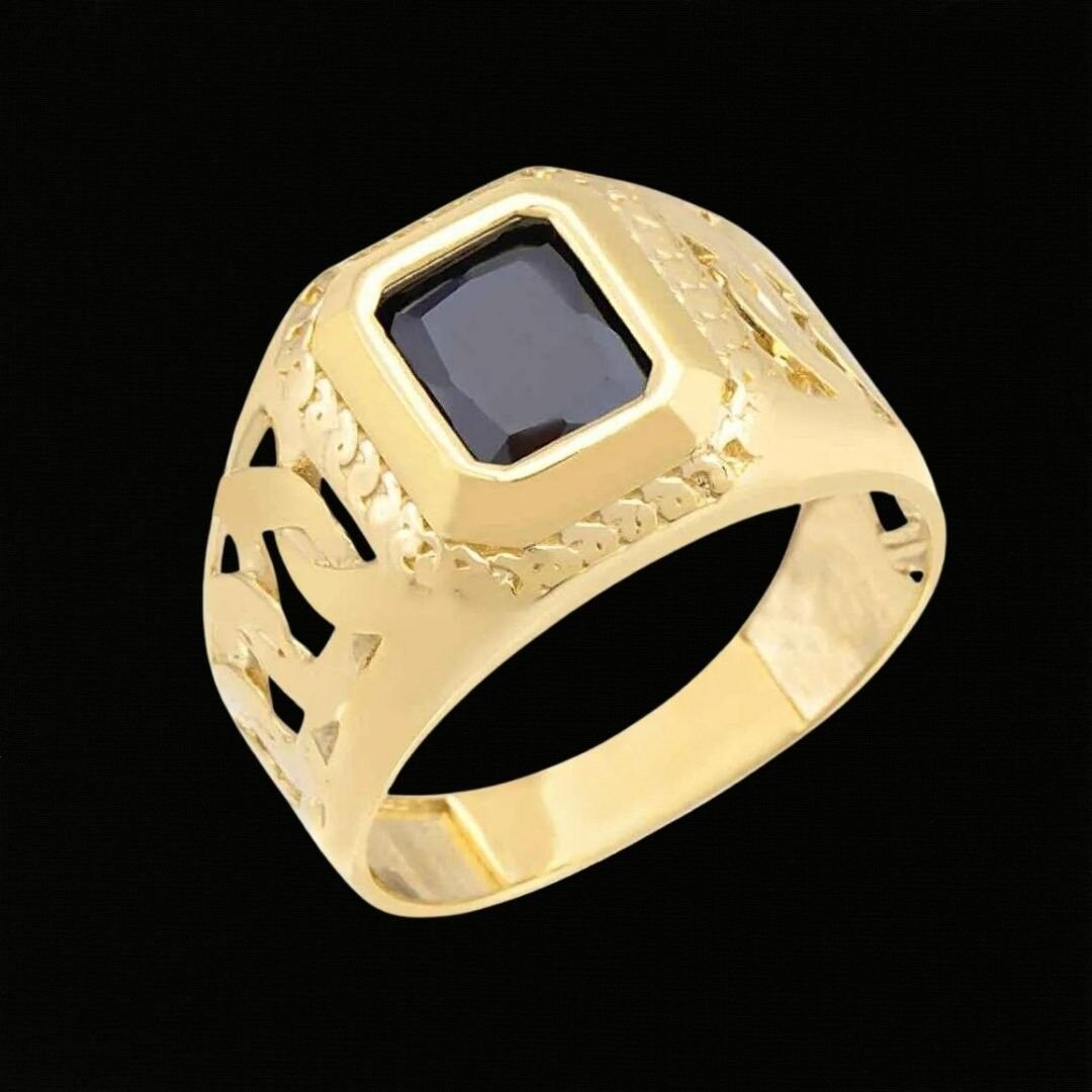 14 Ayar Altın Siyah Taşlı Erkek Yüzüğü