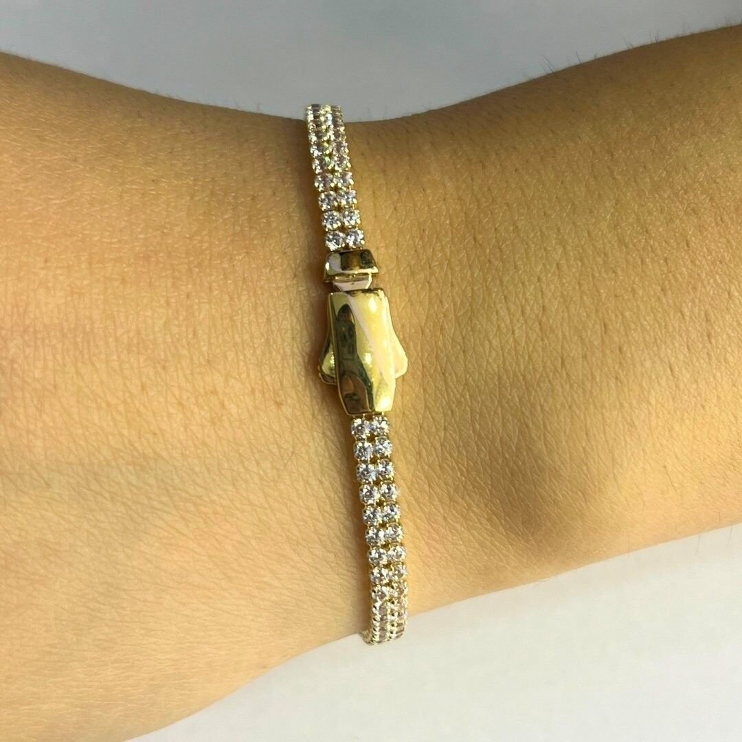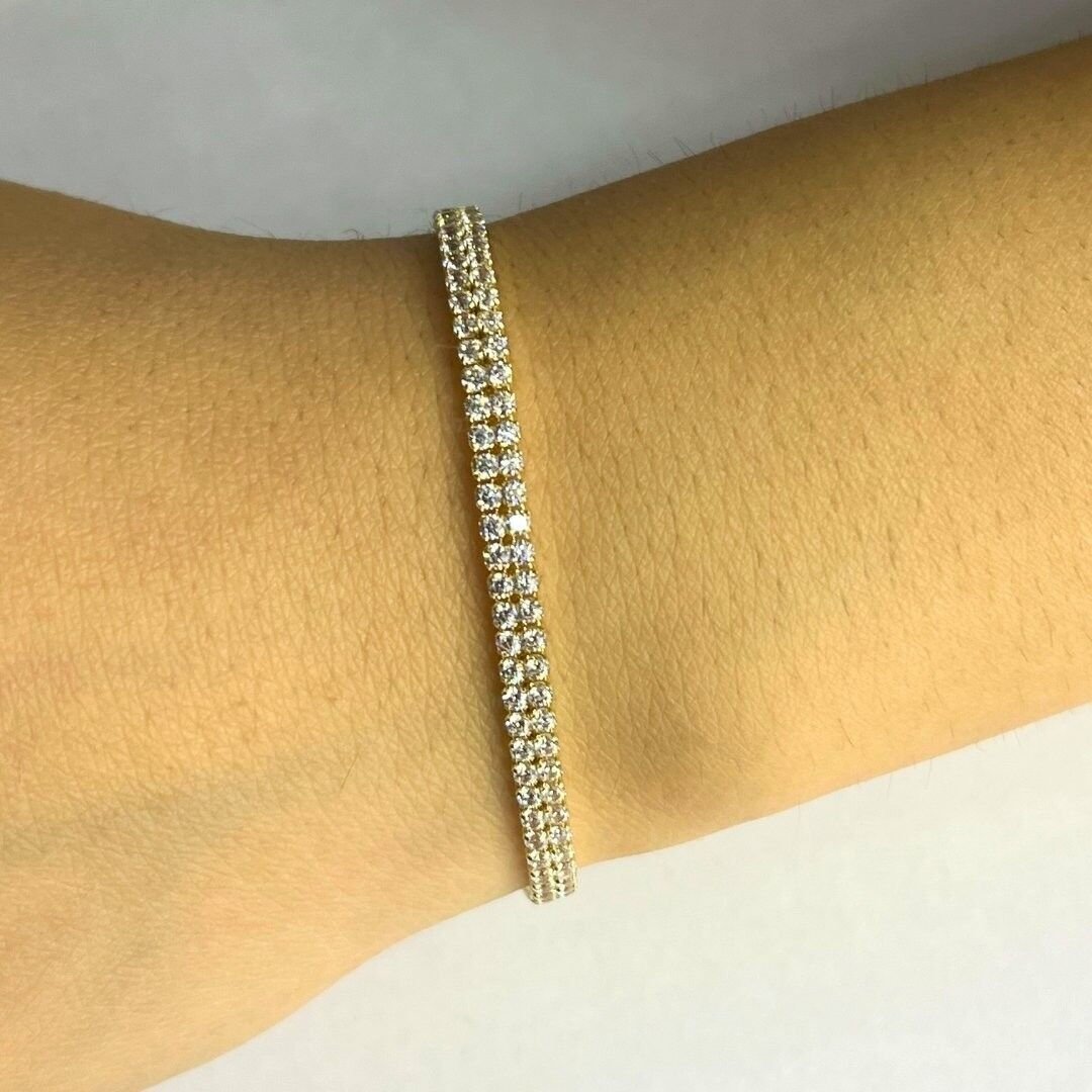 Kullanım: Çift sıra taşların sunduğu ekstra parlaklık, bu bilekliği hem gündelik kullanımda hem de özel davetlerde öne çıkan bir aksesuar haline getirir. Lüks görünümü ve zarif yapısıyla, sade kıyafetlerle bile göz alıcı bir etki yaratır.