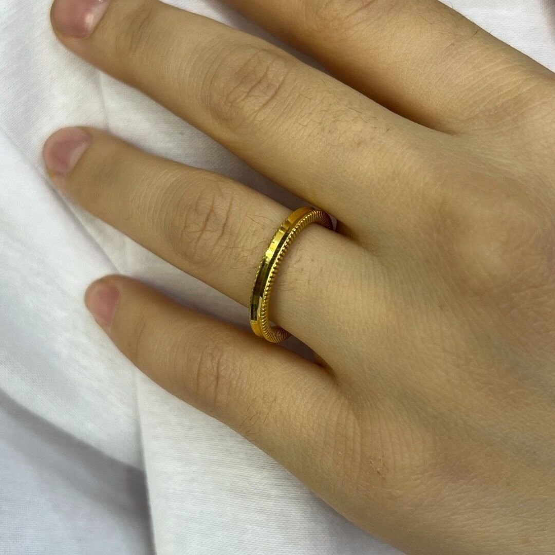 Bu zarif 14 ayar altın tamtur ajda yüzük, ince işçiliği ve klasik tamtur tasarımıyla öne çıkar. Yüzük boyunca sıralı ajda detayları, altının parlaklığı ile birleşerek dikkat çekici bir görünüm sunar. 1,85 gram ağırlığındaki bu yüzük,