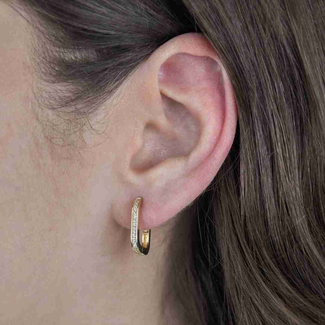 14 Ayar Altın Taşlı Kare Halka Küpe