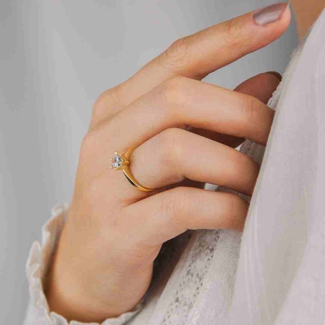 14 Ayar Altın Tektaş 6 Tırnak Yüzük