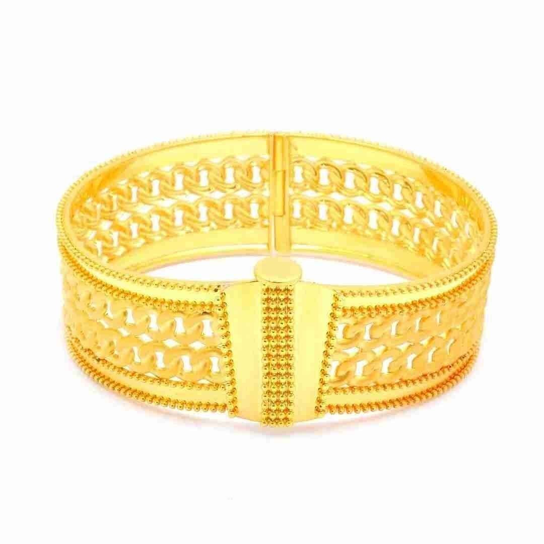 Evla Kuyumculuk’un özel koleksiyonundan 14 Ayar Altın Trabzon Hasır Kelepçe, zarafet ve şıklığı bir araya getiren özel bir kuyumculuk ürünüdür. Bu kelepçe, yüksek kaliteli 14 ayar altın kullanılarak özenle tasarlanmış ve işlenmiştir. Trabzon hasır deseniyle süslenen bu kelepçe, benzersiz bir görünüm sunar ve her türlü kıyafetle mükemmel bir uyum sağlar. Bu özel kelepçe, 23,31 gram ağırlığıyla sağlam ve gösterişli bir yapıya sahiptir. Bu sayede bileğinizi etkileyici bir şekilde süsler ve şıklığınızı vurgular. Trabzon hasır deseni, kelepçenin üzerindeki örgü detaylarıyla birleşerek göz alıcı bir etki yaratır.