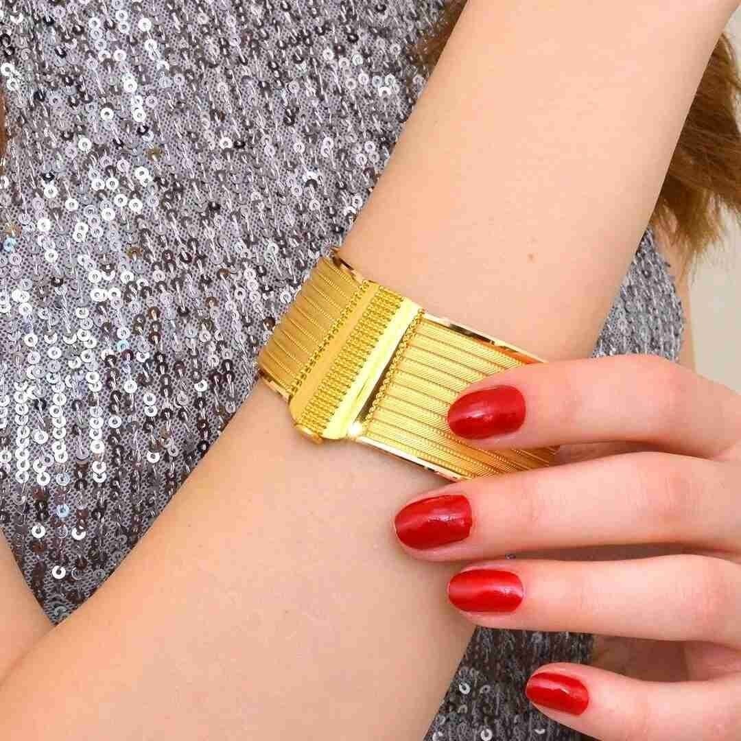 Evla Kuyumculuk’un özel koleksiyonundan 14 Ayar Altın Trabzon Hasır Kelepçe, etkileyici ve gösterişli bir kuyumculuk ürünüdür. Bu kelepçe, yüksek kaliteli 14 ayar altın kullanılarak özenle tasarlanmış ve işlenmiştir. Trabzon hasır deseniyle süslenen bu kelepçe, benzersiz bir görünüm sunar ve her türlü kıyafetle mükemmel bir uyum sağlar. Bu özel kelepçe, 28,02 gram ağırlığıyla sağlam ve gösterişli bir yapıya sahiptir. Bu sayede bileğinizi etkileyici bir şekilde süsler ve şıklığınızı vurgular. Trabzon hasır deseni, kelepçenin üzerindeki örgü detaylarıyla birleşerek göz alıcı bir etki yaratır.