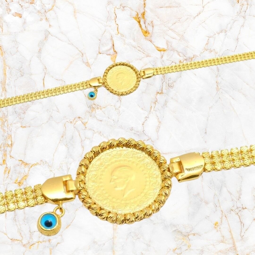 Evla Kuyumculuk’un 14 Ayar Altın Üç Sıralı Çeyrekli Bileklik ürünü, şu özelliklere sahiptir: