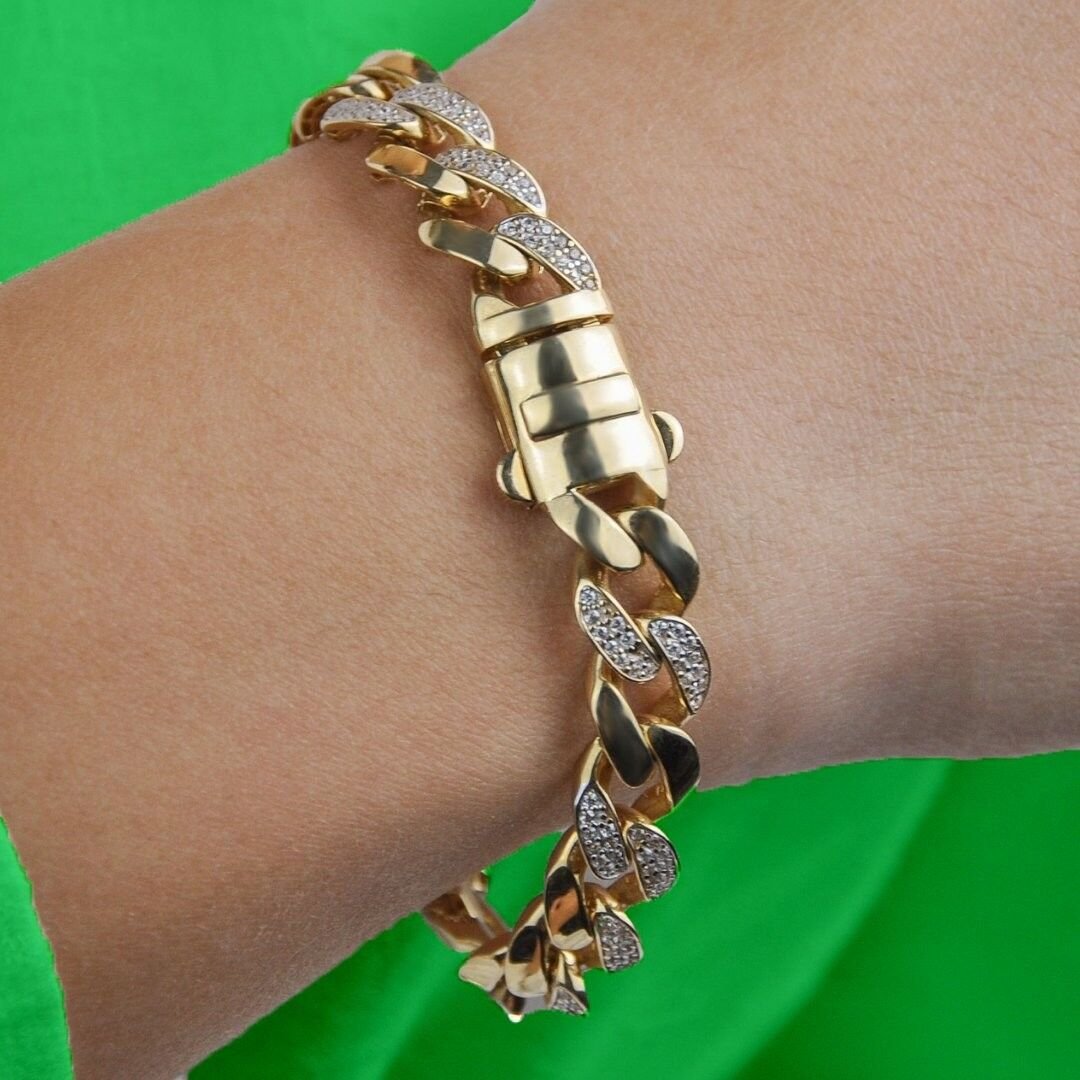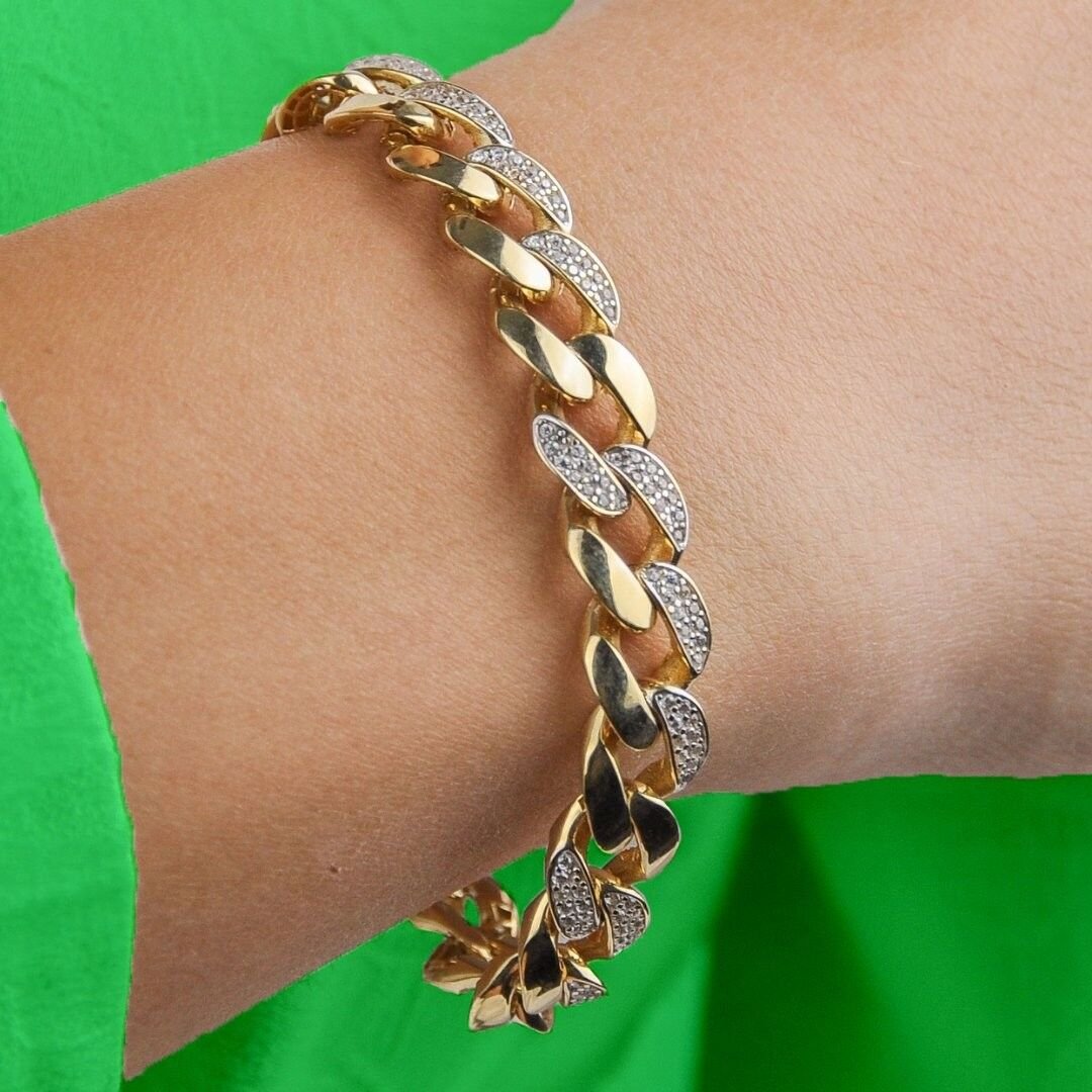 14 Ayar Altın Yan Taşlı Monaco Bileklik 14,80 Gram: