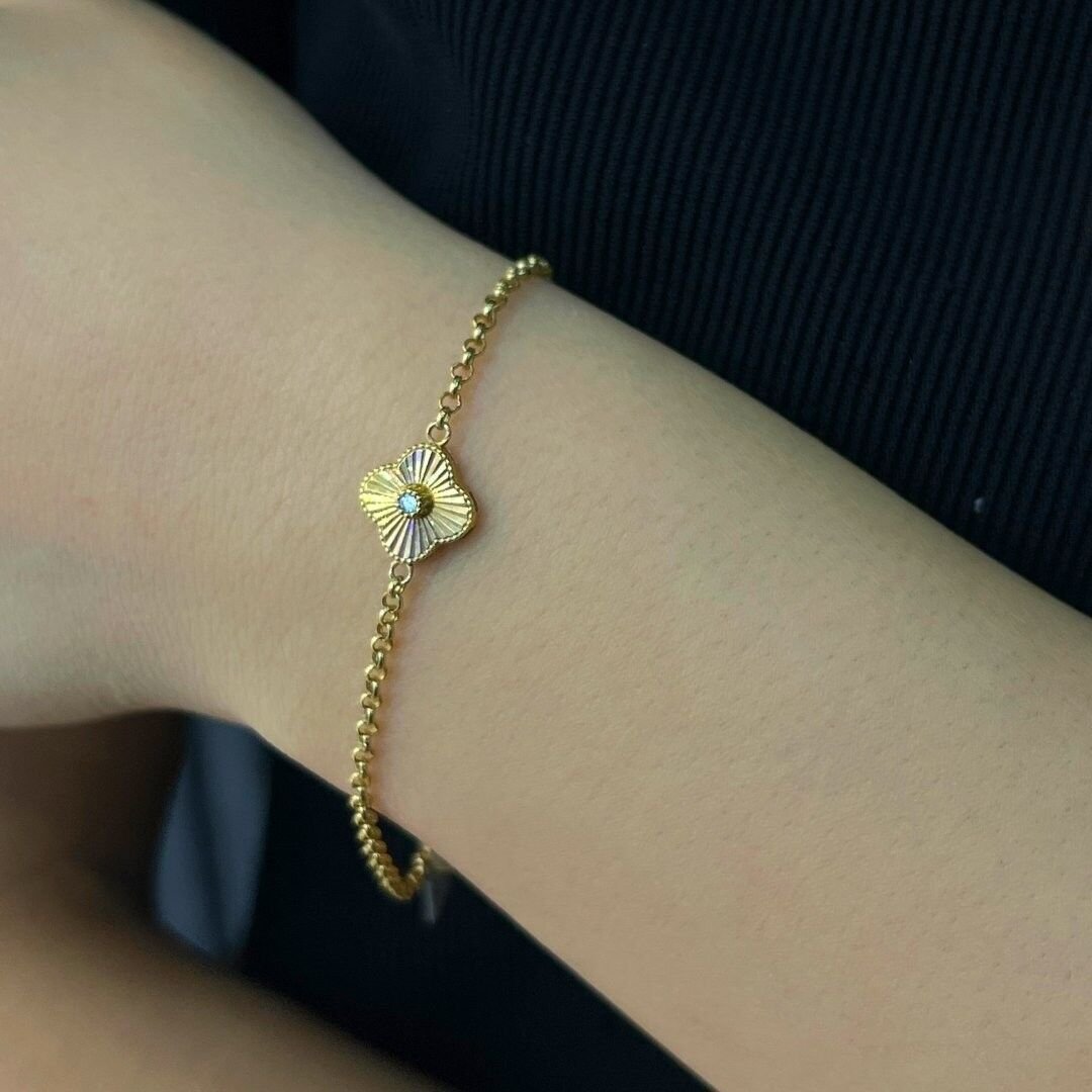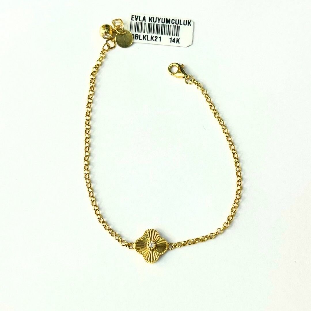 - Tasarım: Dört yapraklı yonca figürü, şans ve zarafet sembolü 14 Ayar Altın Yonca Bileklik