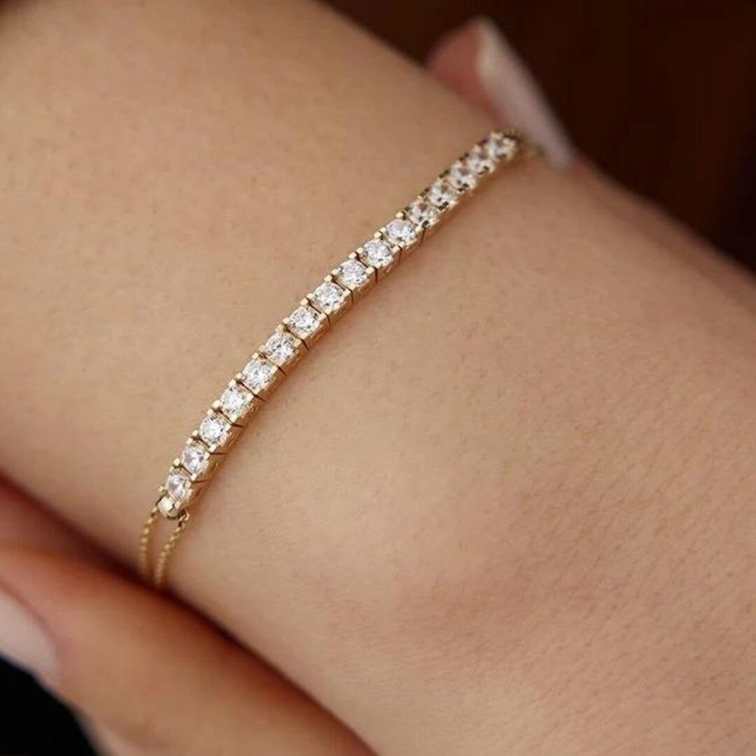 14 Ayar Altın Zincirli Su Yolu Bileklik, 3,40 gram ağırlığında zarif bir tasarıma sahiptir. Altın zincir detayları ve su yolu taşlarıyla modern ve şık bir görünüm sunar. Hem gündelik hem de özel günlerde rahatlıkla kullanabileceğiniz bu bileklik, bileğinizde zarif bir ışıltı yaratır.
