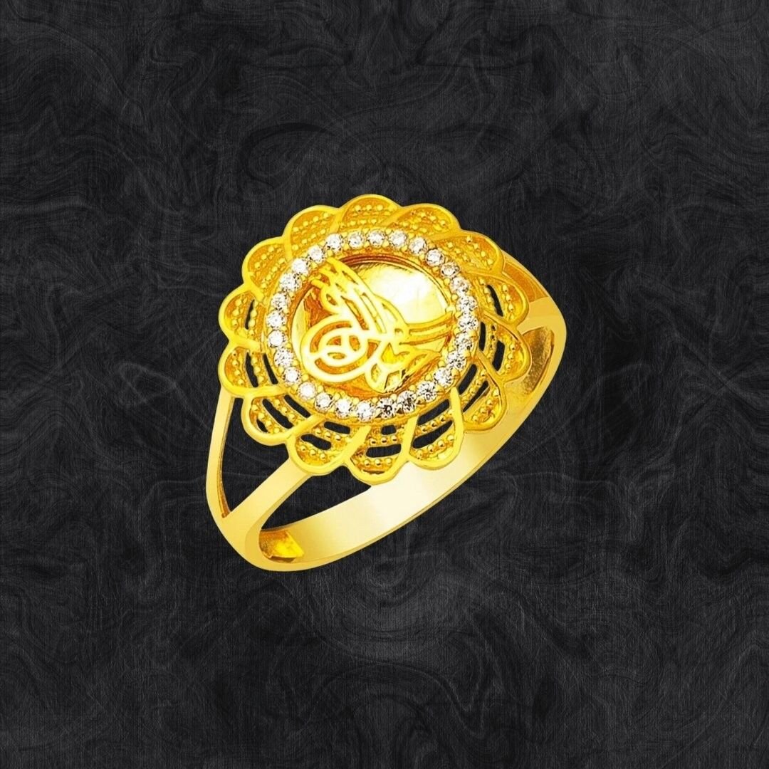 14 Ayar Çiçek Tuğra Altın Yüzük 2,42 Gram :