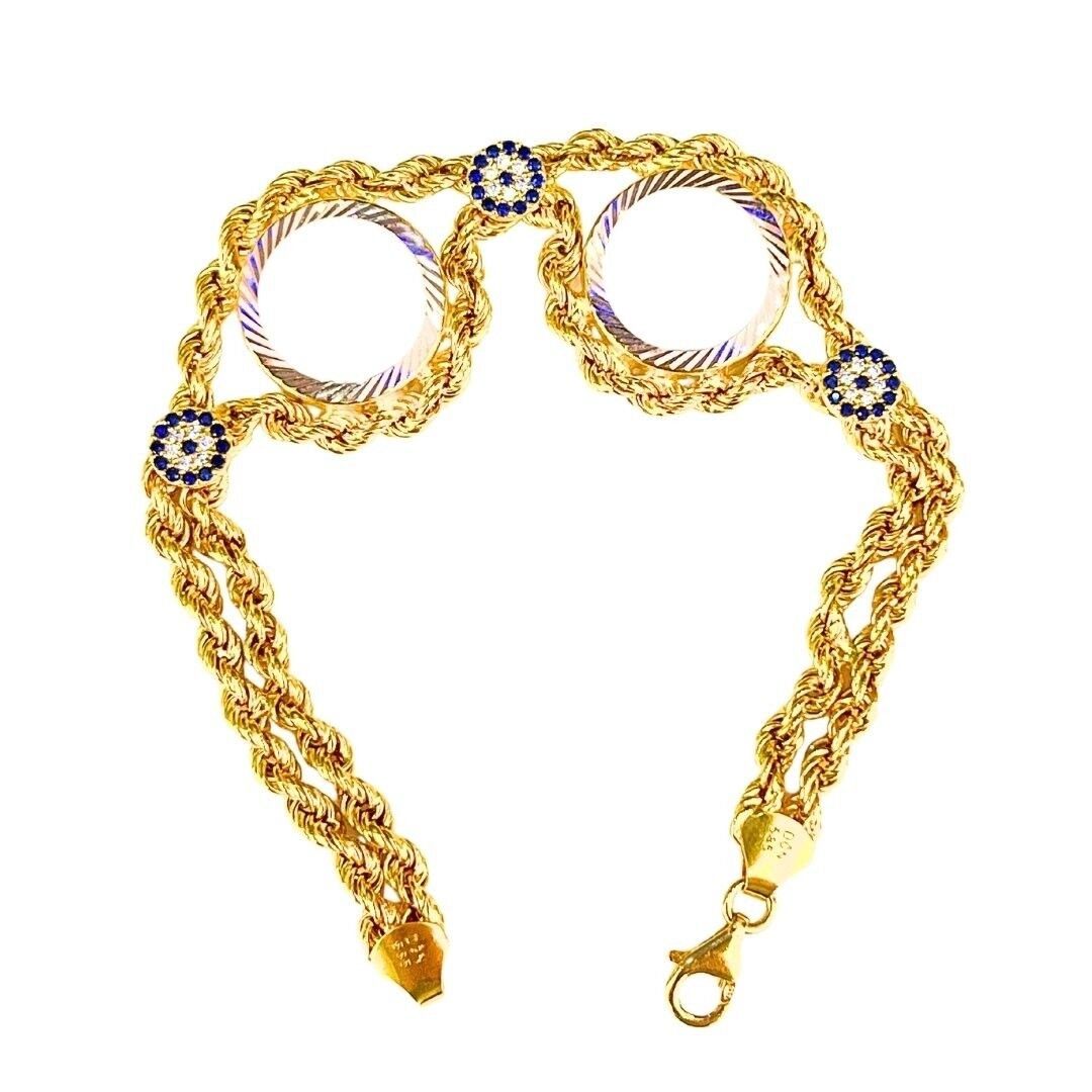 14 Ayar İki Çeyrekli Bileklik üzerindeki iki çeyrek altın, hem şıklığı tamamlar hem de anlamlı bir dokunuş katar.