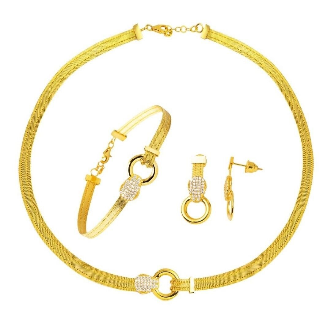 22 Ayar Altın 3 Sıra Taşlı Trabzon Hasır Set Takımı 34,50 Gram: