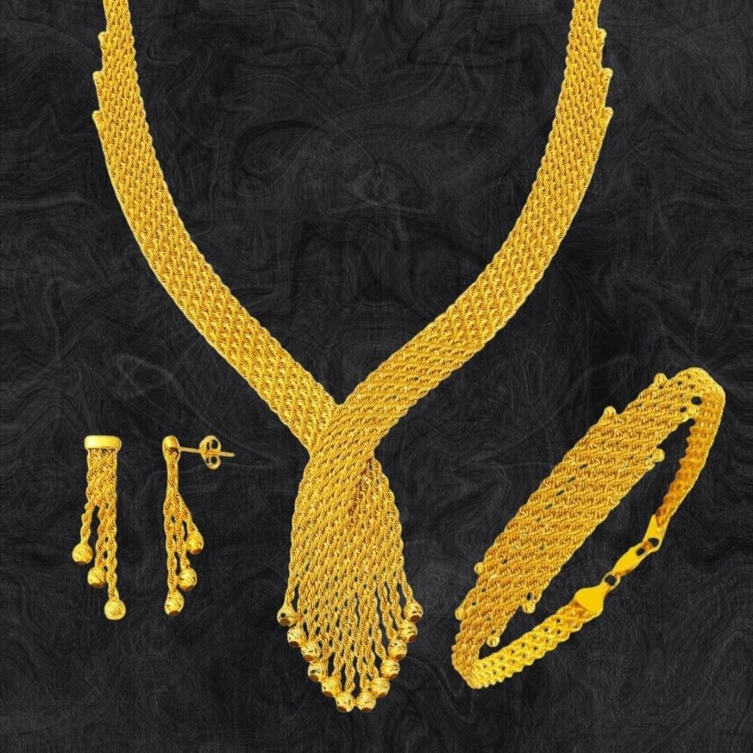 Evla Kuyumculuk’un 8 Ayar Altın Mesh Örgü Set Takımı 24,32 Gram modeli, modern ve zarif bir tasarıma sahip, her yaştan kadına hitap eden bir aksesuardır. Set takımı, mesh deseninin modern görünümünü altınla buluşturmaktadır.