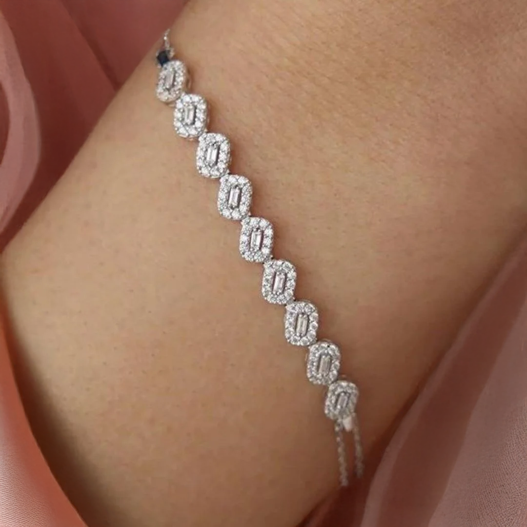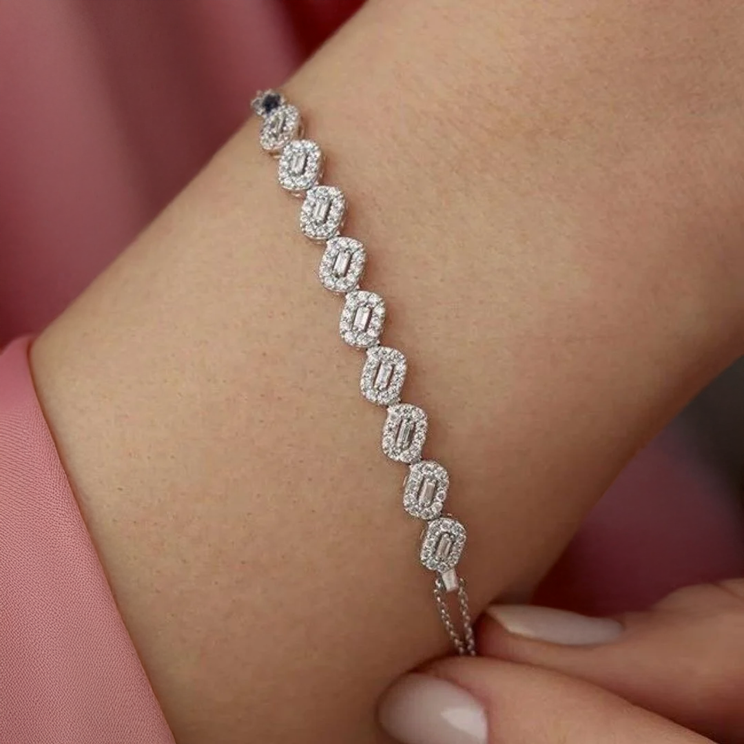 Altın Baget Zincirli Suyolu Bileklik, baget kesim görünümündeki su yolu diziliminin ince zincirle birleştiği zarif bir tasarıma sahiptir. Zincirli yapısı bilekte daha hafif ve esnek bir kullanım sunarken, baget su yolu detayı bilekliğe ışıltılı ve modern bir hava kazandırır.