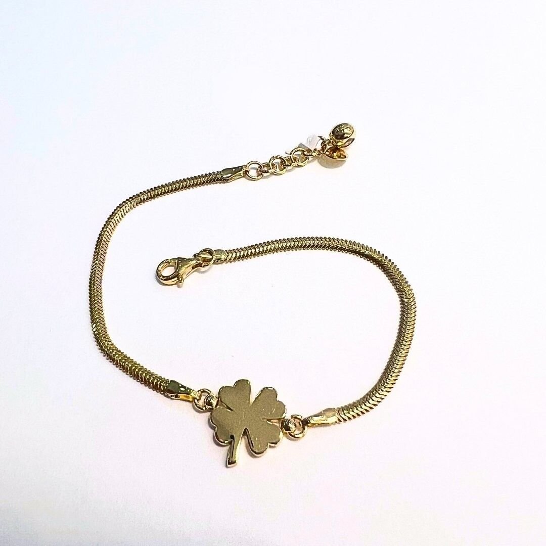 Balık sırtı deseni ve yonca detayları ile özgün bir tasarıma sahip olan bu bileklik,