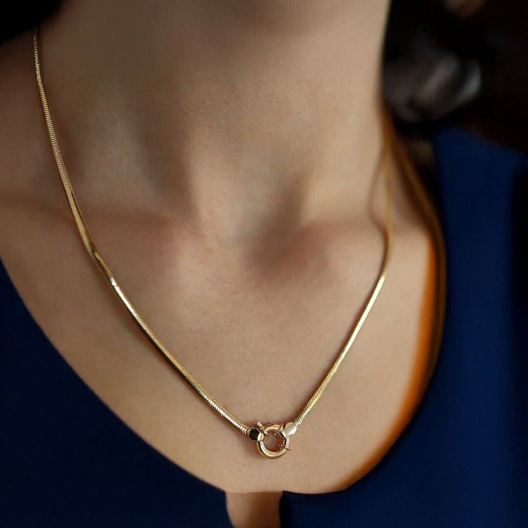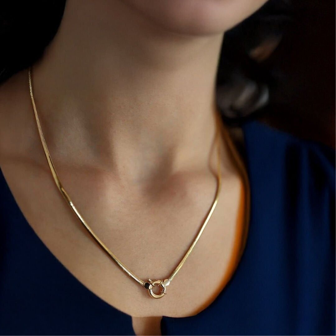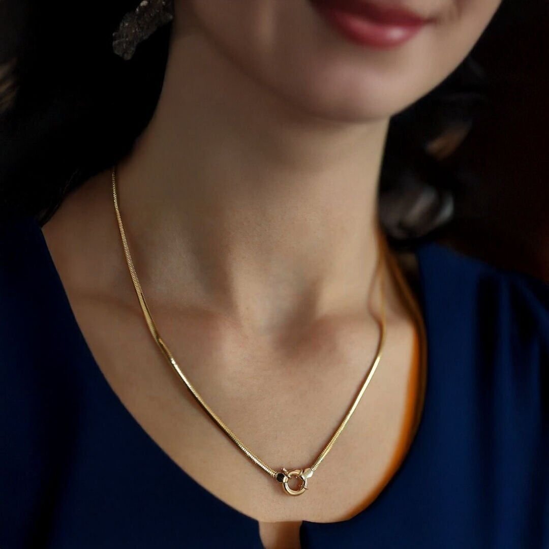 Bu Altın Balıksırtı Zincir, 585 ayar (14 ayar) altın kullanılarak üretilmiştir.