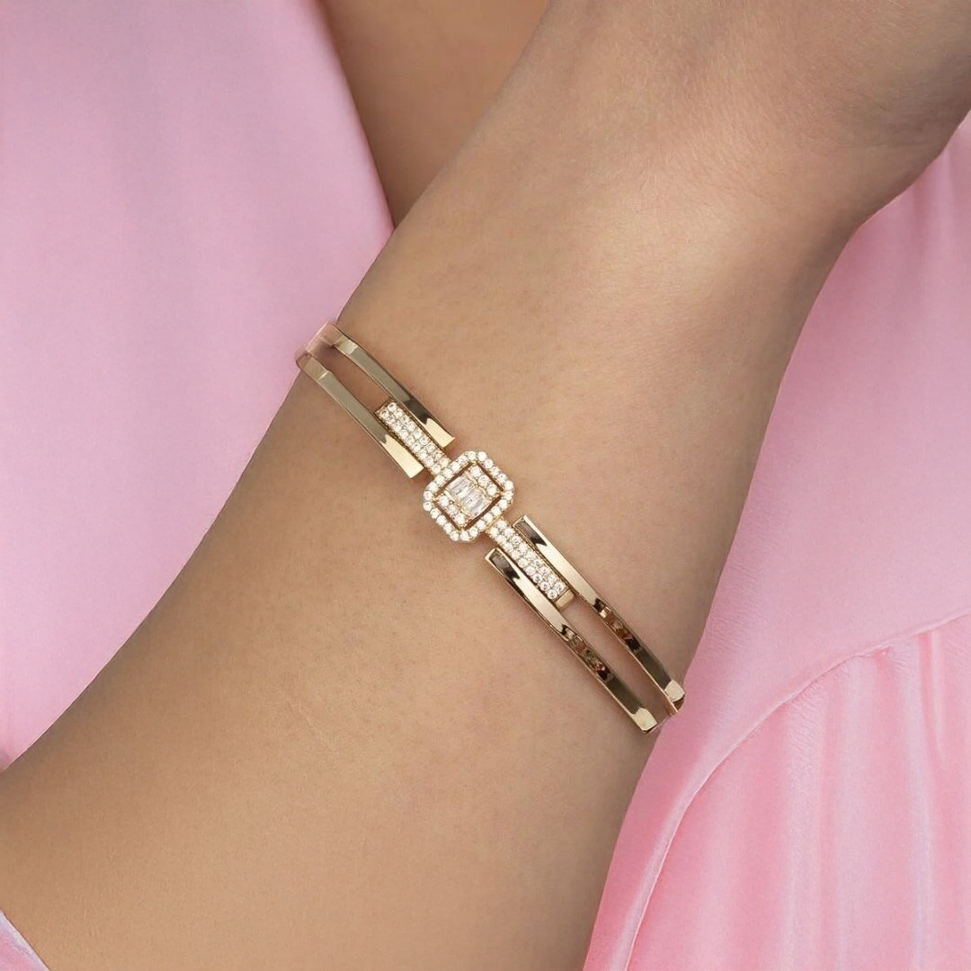 8 ayar sarı altından üretilen bu zarif kelepçe, 5,30 gram ağırlığıyla günlük kullanımda konfor ve estetik görünüm sunar.