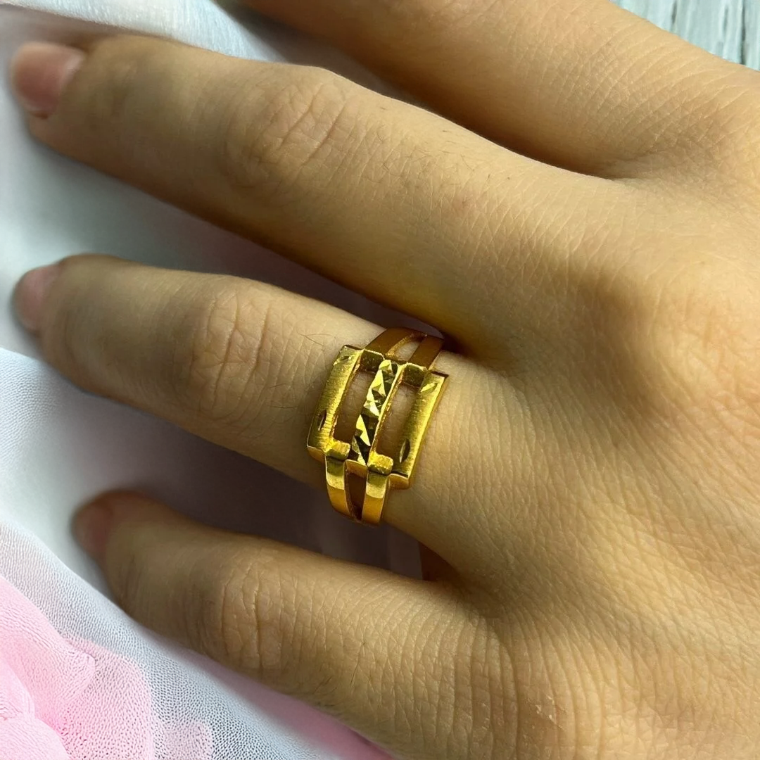 Altın Kaburga Yüzük, kaburga formunun modern çizgileriyle tasarlanmış, parmakta hem hacimli hem de zarif bir görünüm oluşturan şık bir yüzüktür. Yüzüğün katmanlı yapısı ışığı farklı açılardan yansıtarak dikkat çekici bir parlaklık sunar.