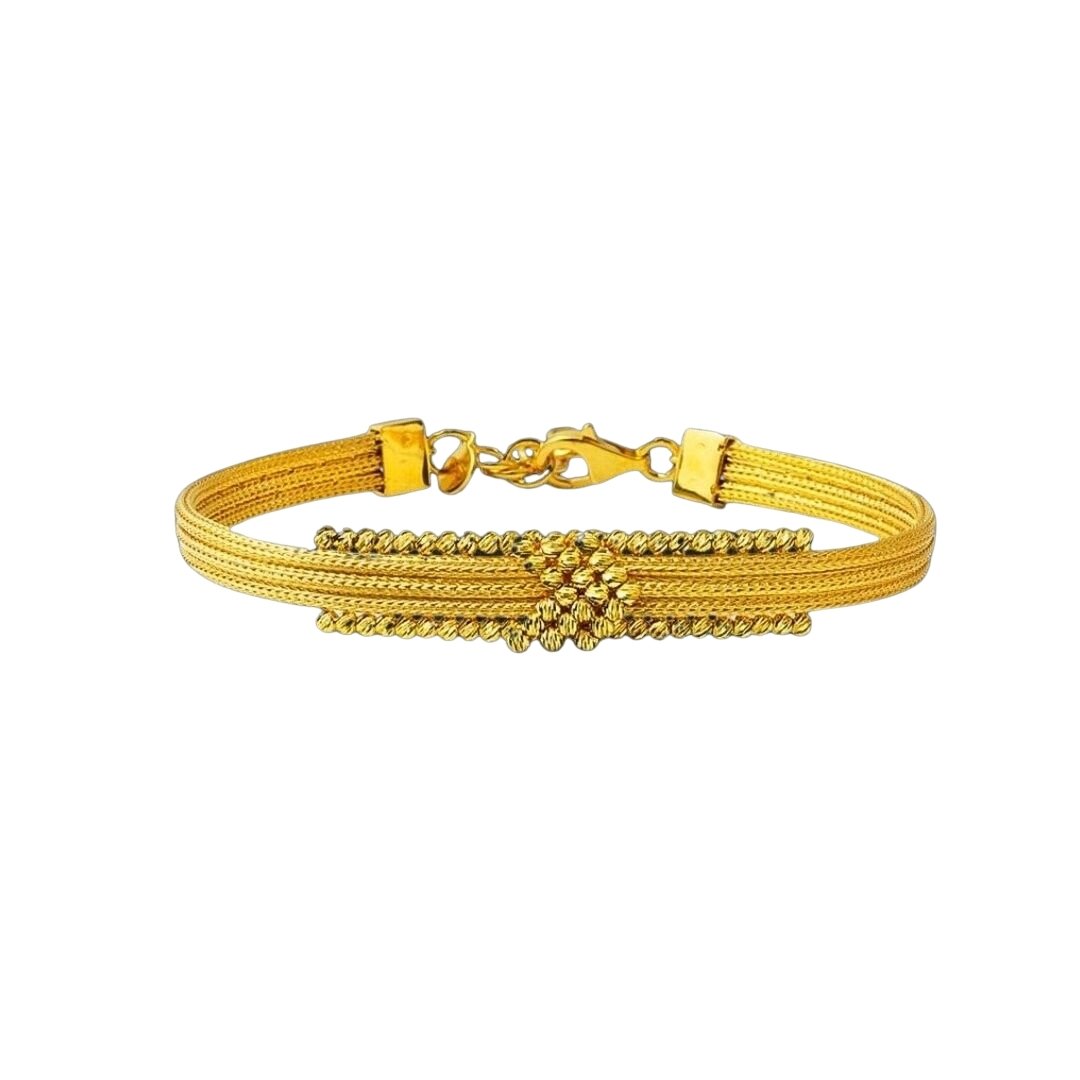 Tamamı el işçiliğiyle üretilen bu model, doğal altın parlaklığıyla taşsız sade bir ışıltı sunar.