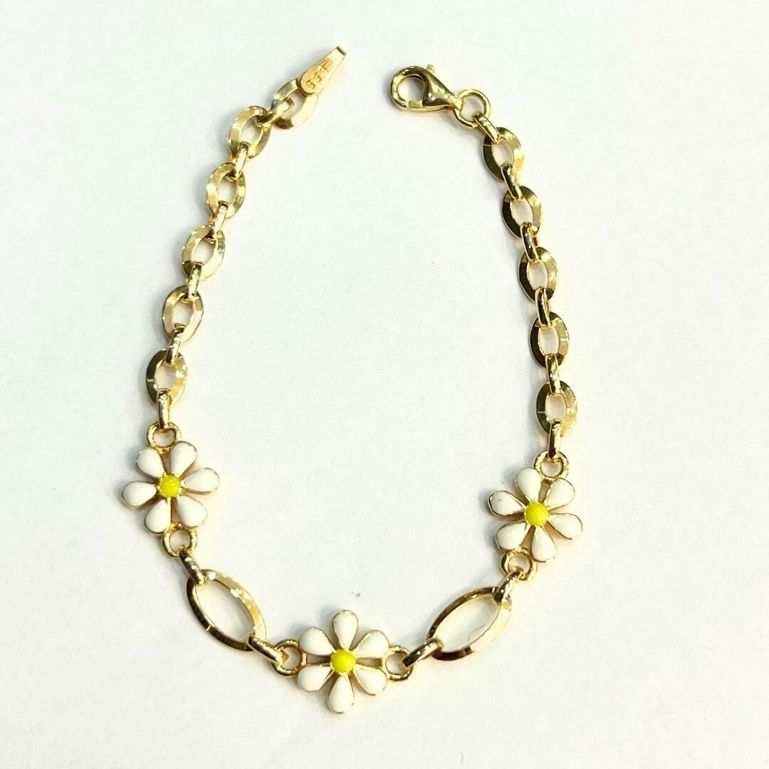 Bu 8 ayar altın papatya çocuk bilekliği, hem şık görünümü hem de dayanıklı yapısıyla çocuklar için harika bir hediye seçeneğidir.