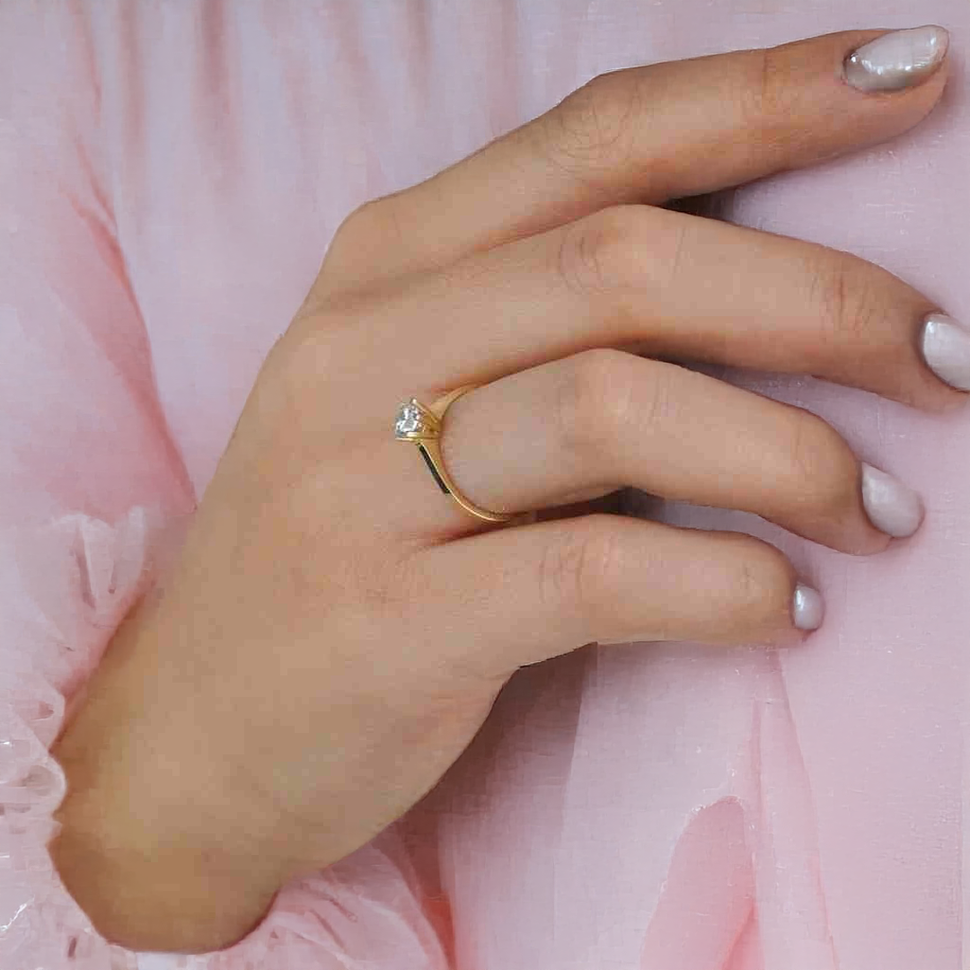 Altın 6 Tırnak Tektaş Yüzük, klasik ve romantik bir tasarım arayanlar için ideal bir modeldir. Tektaşın parlaklığını maksimum düzeyde öne çıkaran 6 tırnaklı özel form, yüzüğe daha gösterişli ve dengeli bir görünüm kazandırır.