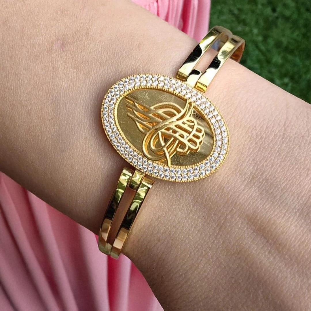 Tuğra figürü, tarihî anlamı ve zarafetiyle takıya asil bir duruş kazandırır.