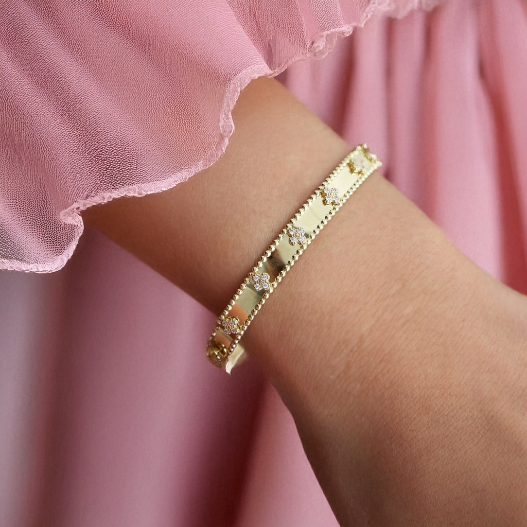 Altın Yonca Kelepçe – 14 Ayar Taşlı Altın 10 Gram ;