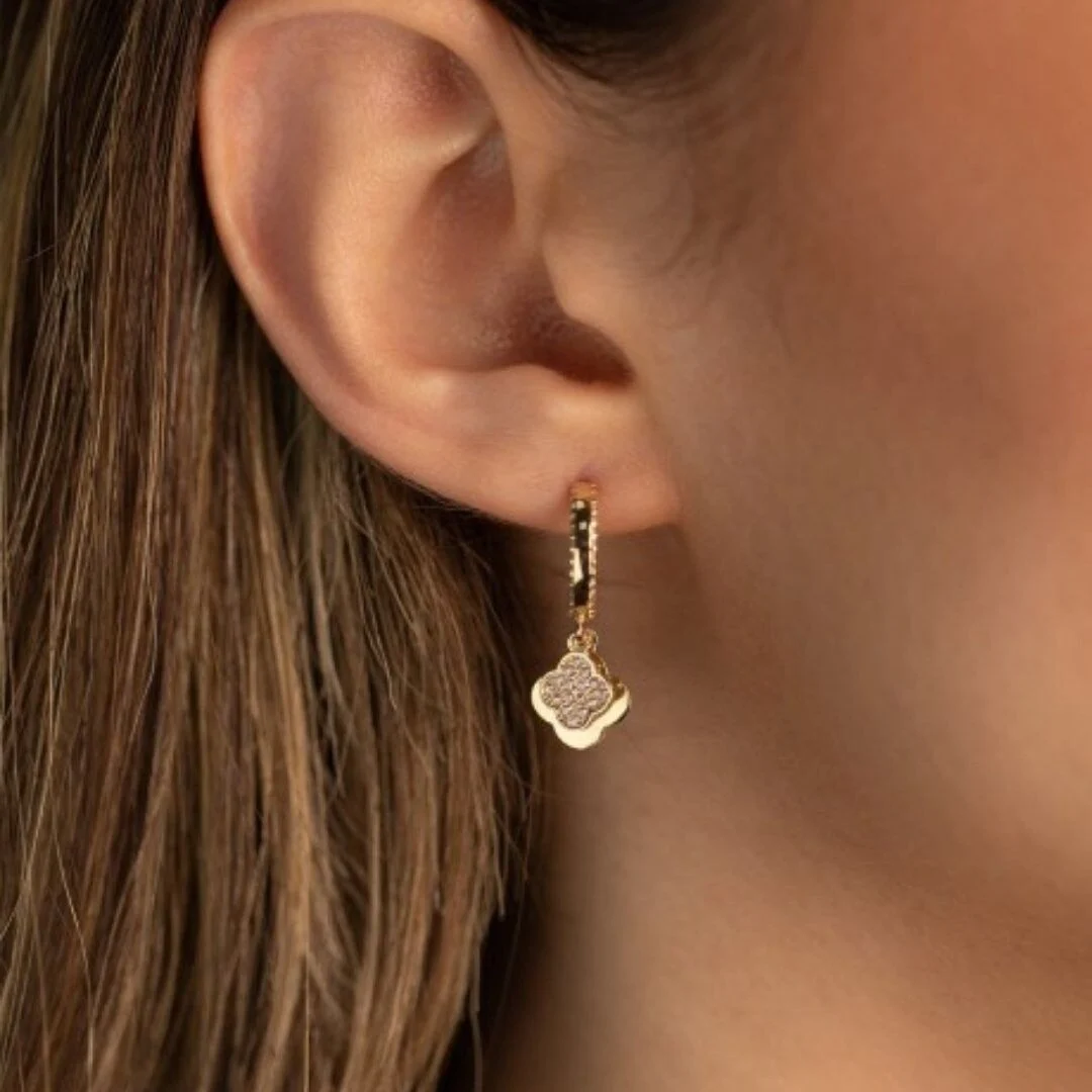 Bu küpe, günlük kullanımda rahatlıkla tercih edilebilecek hafif ve konforlu bir yapıya sahip olup, özel günlerde de sade ama etkileyici bir şıklık sunar. Minimal tasarım arayanların favorisi olan yonca detayı, farklı kombinlerle kolayca uyum sağlar ve her yaş grubuna hitap eder.